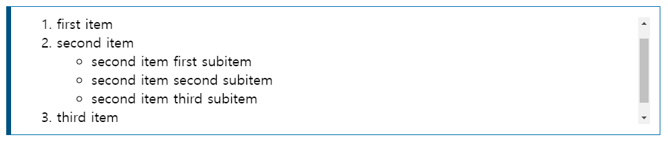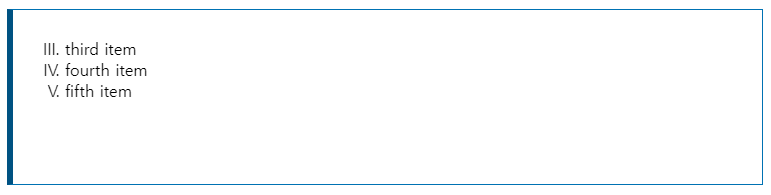 - 메뉴와 비정렬 목록에서는 보통 불릿으로 항목을 나타내고, 정렬 목록에서는 숫자나 문자를 사용한 오름차순 카운터로 나타낸다.