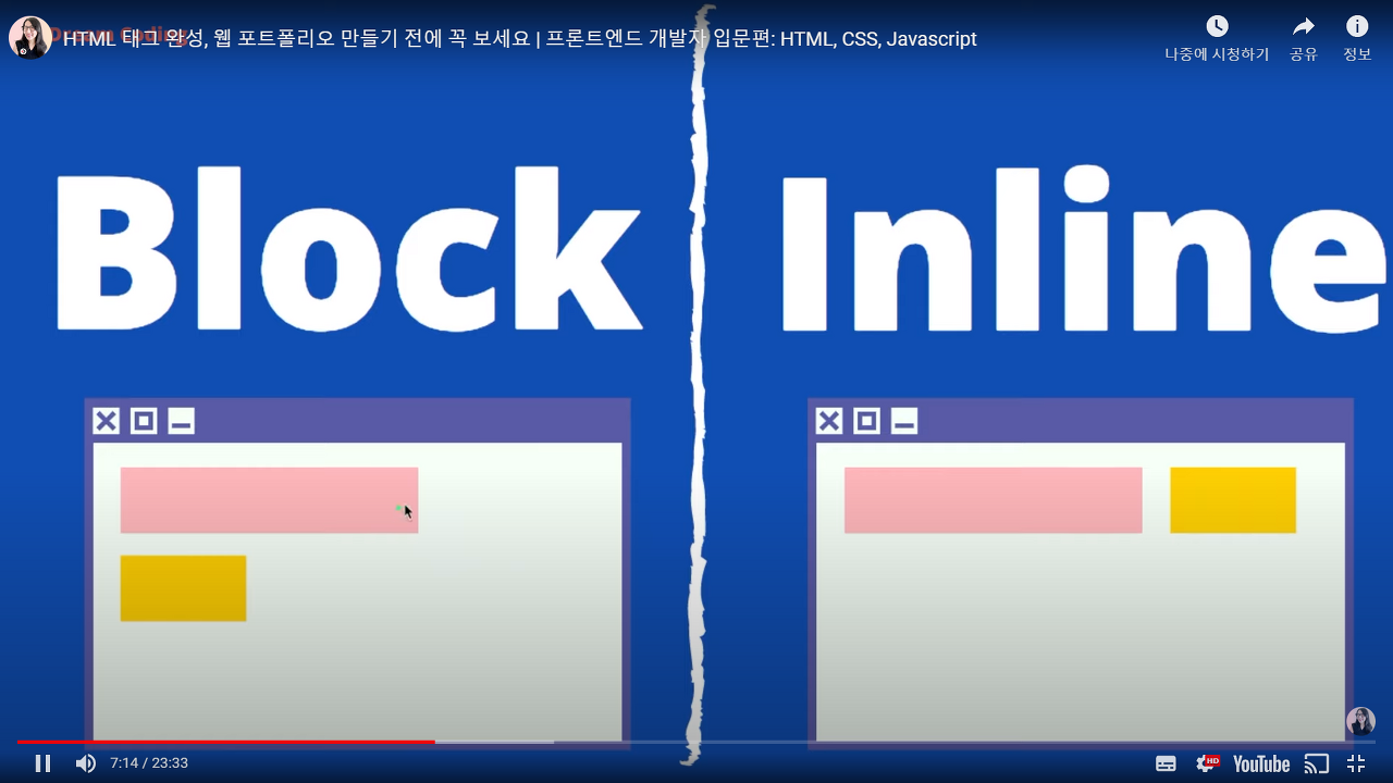 - display 속성값을 인라인에서 블록으로 변경했더라도, 변경된 요소는 내부에 다른 요소를 포함할 수 없음