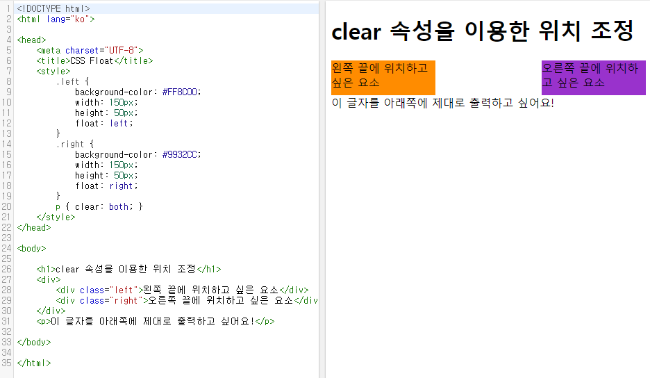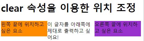 - clear를 설정하지 않으면 위와 같이 원하는 의도대로 배치되지 않음