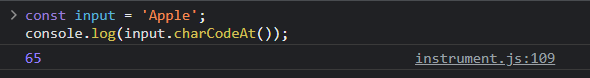 charCodeAt() 메서드는 주어진 인덱스에 대한 UTF-16 코드를 나타내는 0부터 65535 사이의 정수를 반환합니다.