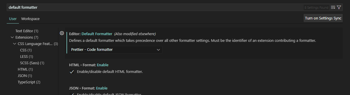 1. Format on Save : 저장 키를 눌렀을 때 자동으로 포맷팅 해주도록 설정한다.