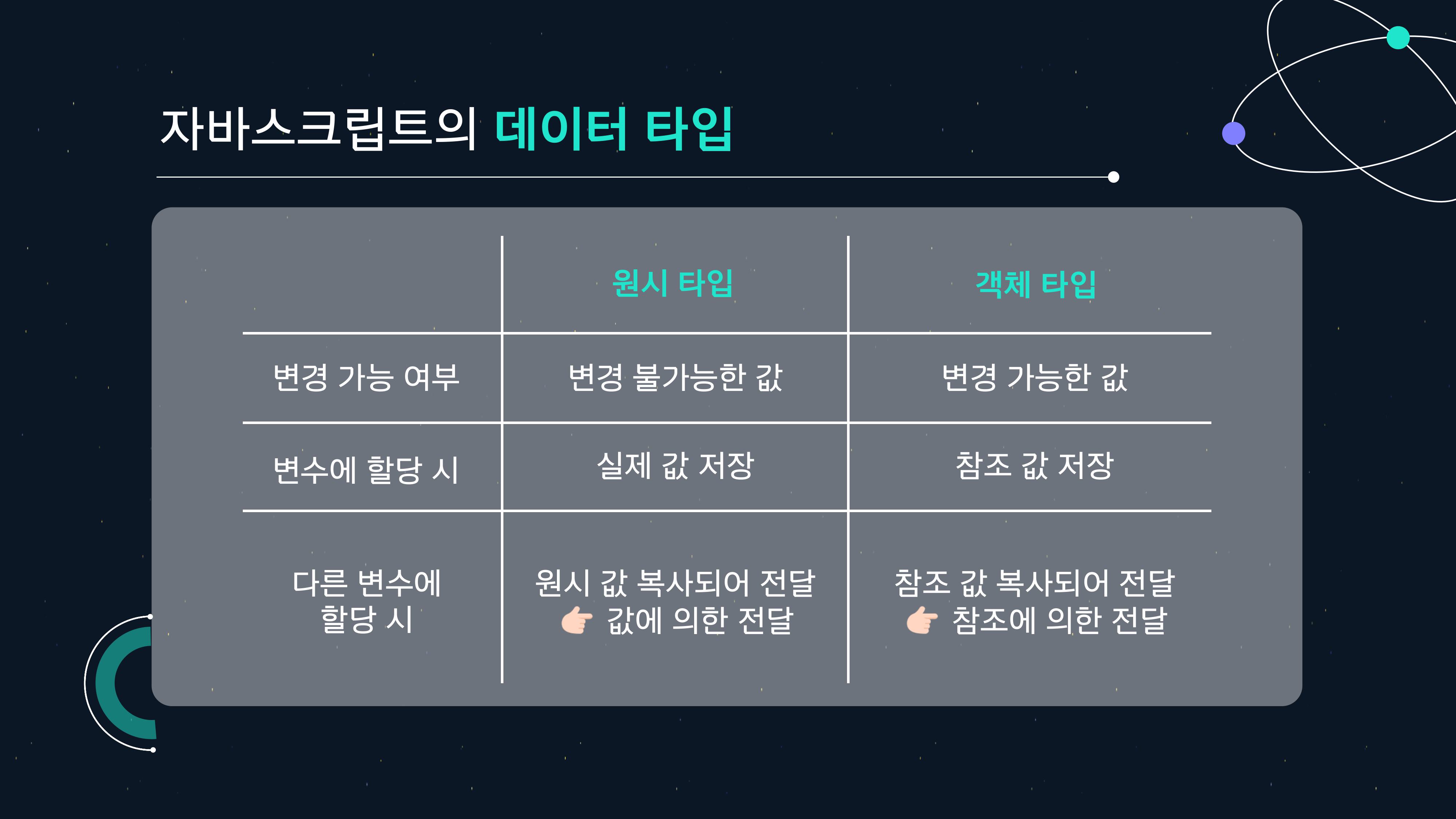 자바스크립트의 데이터 타입과 관련한 내용은 아래의 링크(👇)에서 확인할 수 있어 본 글에서는 위와 같이 짧게 정리하고자 한다.