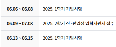 ✔️ 학교의 일정은 학교 홈페이지 > 학사안내 > 학사일정에서 확인할 수 있다. 매 학기마다 챙겨야 하는 중요 일정은 아래와 같다.