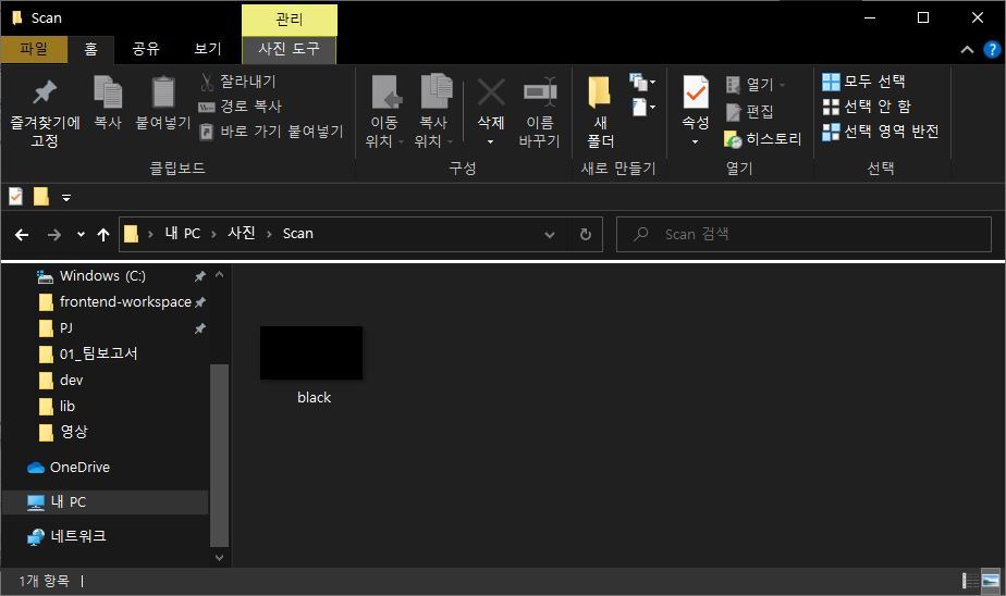 [Scan] 폴더 안에는 'black.jpg'가, [오류] 폴더 안에는 '1.jpg', '2.jpg', '3.jpg'가 있다.