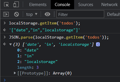 local storage에 사용자가 입력한 값을 저장하는 것까지는 마쳤다. 그러나 해당 내역을 화면에 띄워주고 있지는 않으므로, 해당 기능을 구현한다. local storage에 저장한 값을 가져오려면, JSON.parse를 이용해 JSON으로 저장해 뒀던 내역을 가지고 온다.