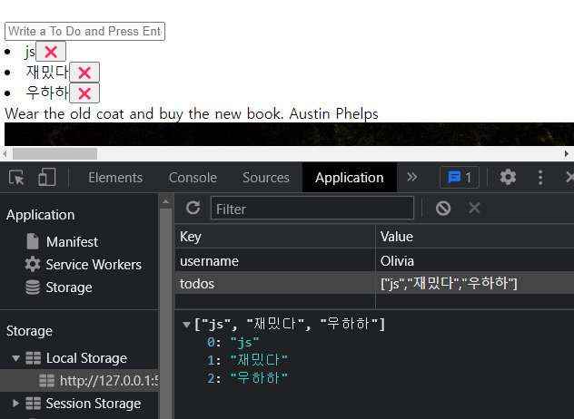 ❓ 그렇다고 해서 text만 저장되는 local storage의 value값이 어떻게 0, 1, 2 인덱스 순서까지 보이는 거지?