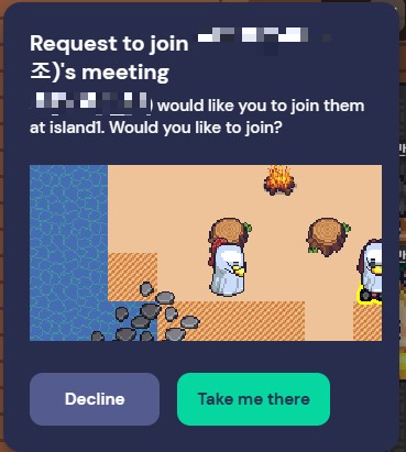 게더에서 알림이 울려서 들어가보면 저렇게 불러주신 분 캐릭터 사진이 같이 뜰 때가 있다. 심오한 닭 분장을 하고 맑은 알림 소리로 부르는 게 너무 웃겨서 볼 때마다 웃는다. 즐겁다.